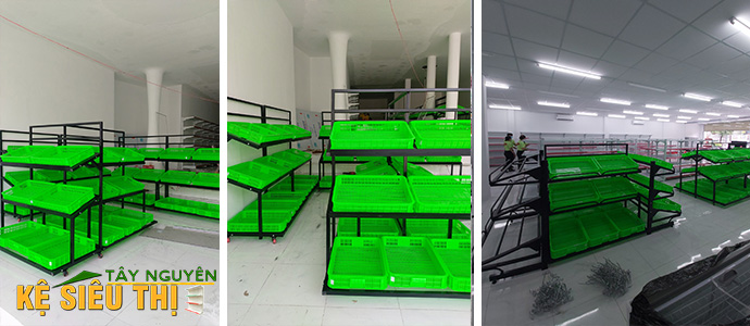 Kệ sắt giỏ nhựa trưng bày trái cây