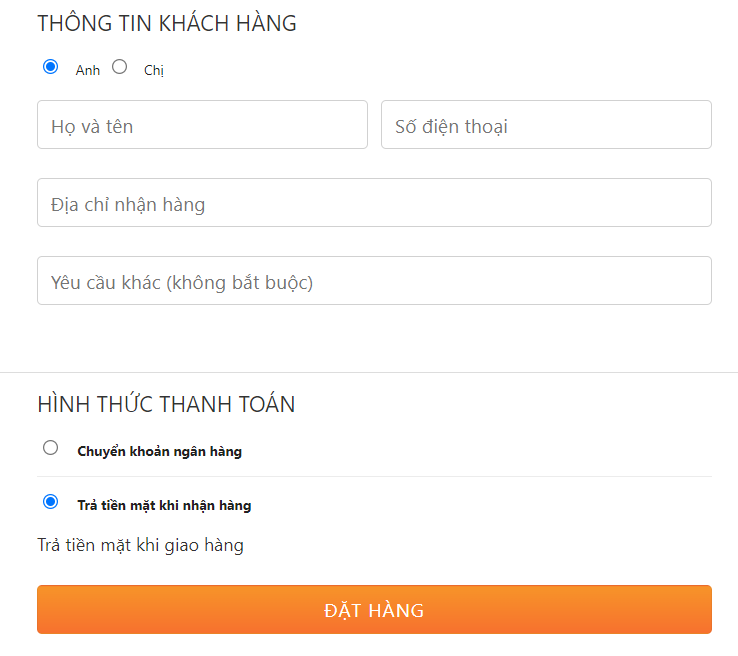 Bước 4. Nhấn vào nút ‘ĐẶT HÀNG’