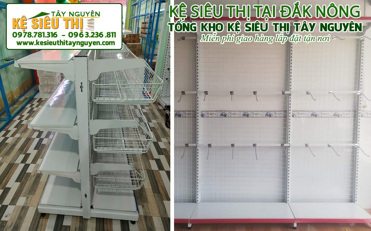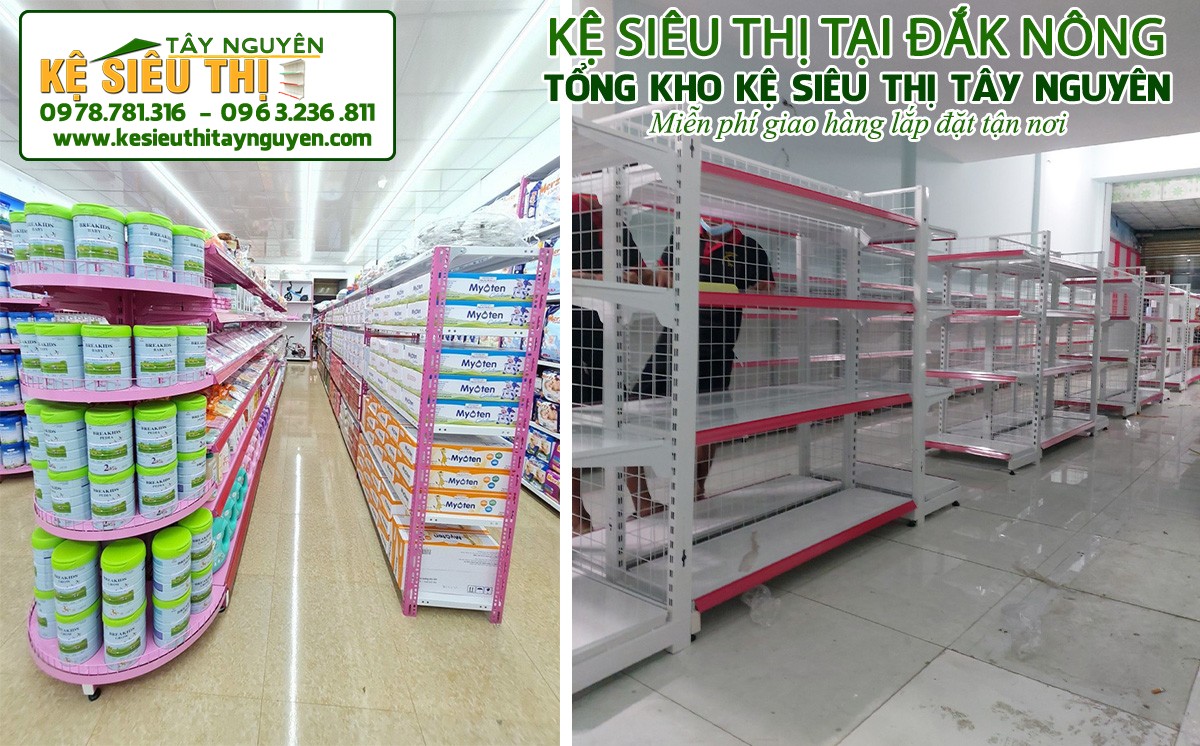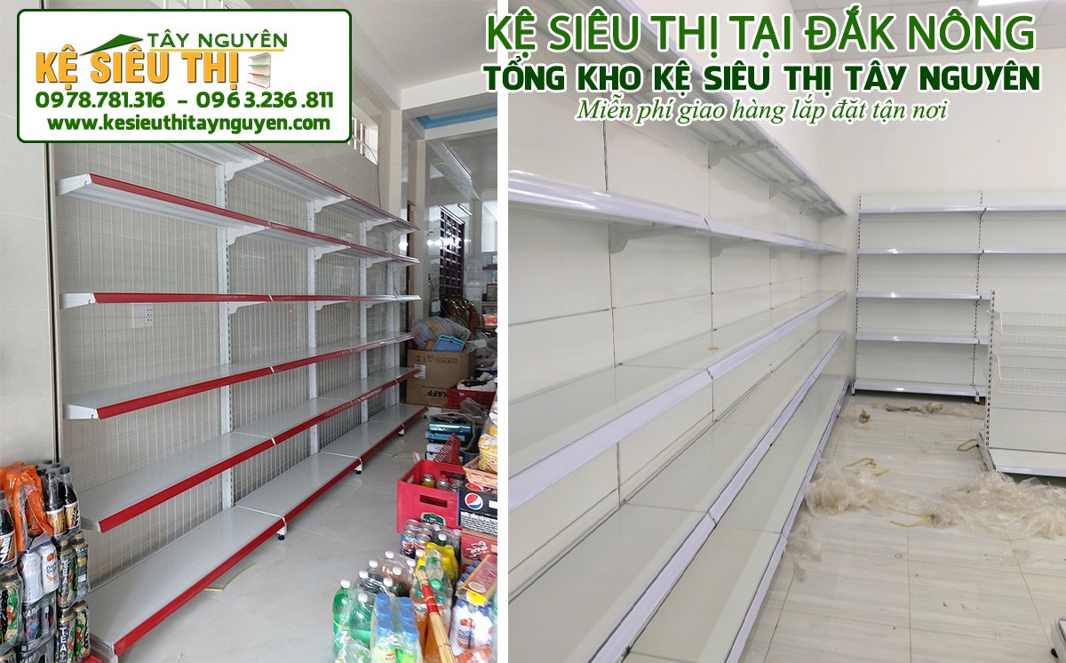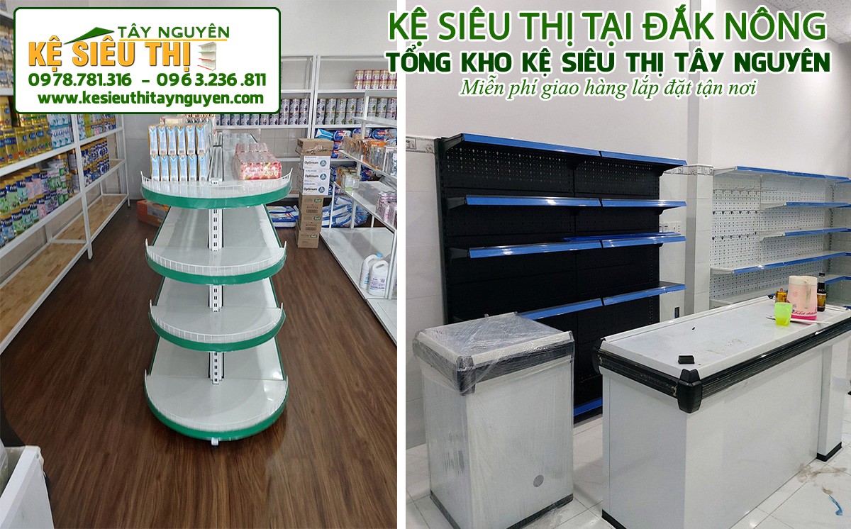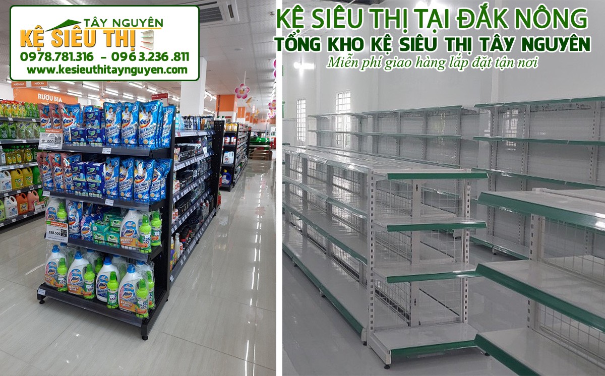 Với nhiều năm phân phối và lắp đặt các loại giá kệ, Kệ siêu thị Tây Nguyên mang đến khách hàng nhiều mẫu giá kệ trưng bày hàng trong siêu thị giá rẻ, chất lượng cao và thích hợp với nhiều mô hình kinh doanh khác nhau. Chúng tôi phân phối các loại kệ trưng bày tạp hóa hàng trên khắp cả nước, trong đó có Đắk Nông.