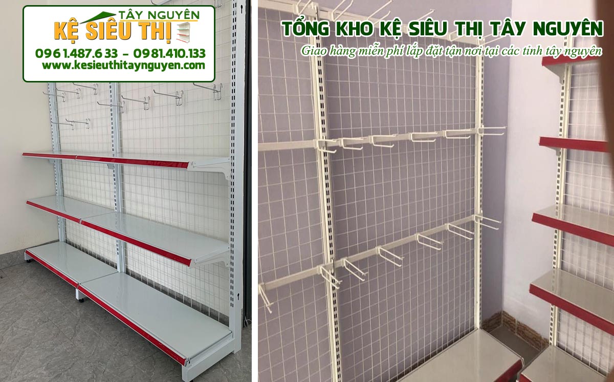 – kệ móc treo đôi 0.7, 0.9, 1.2 m x 1,2m đến 1,8m giúp tận dụng được tối đa không gian để trưng bầy hàng hàng hóa