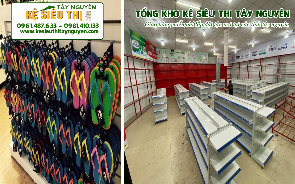 – kệ trưng bày dép đôi 0.7, 0.9, 1.2 m x 1,2m – 1,8m giúp tận dụng được tối đa không gian để trưng bầy hàng hàng hóa