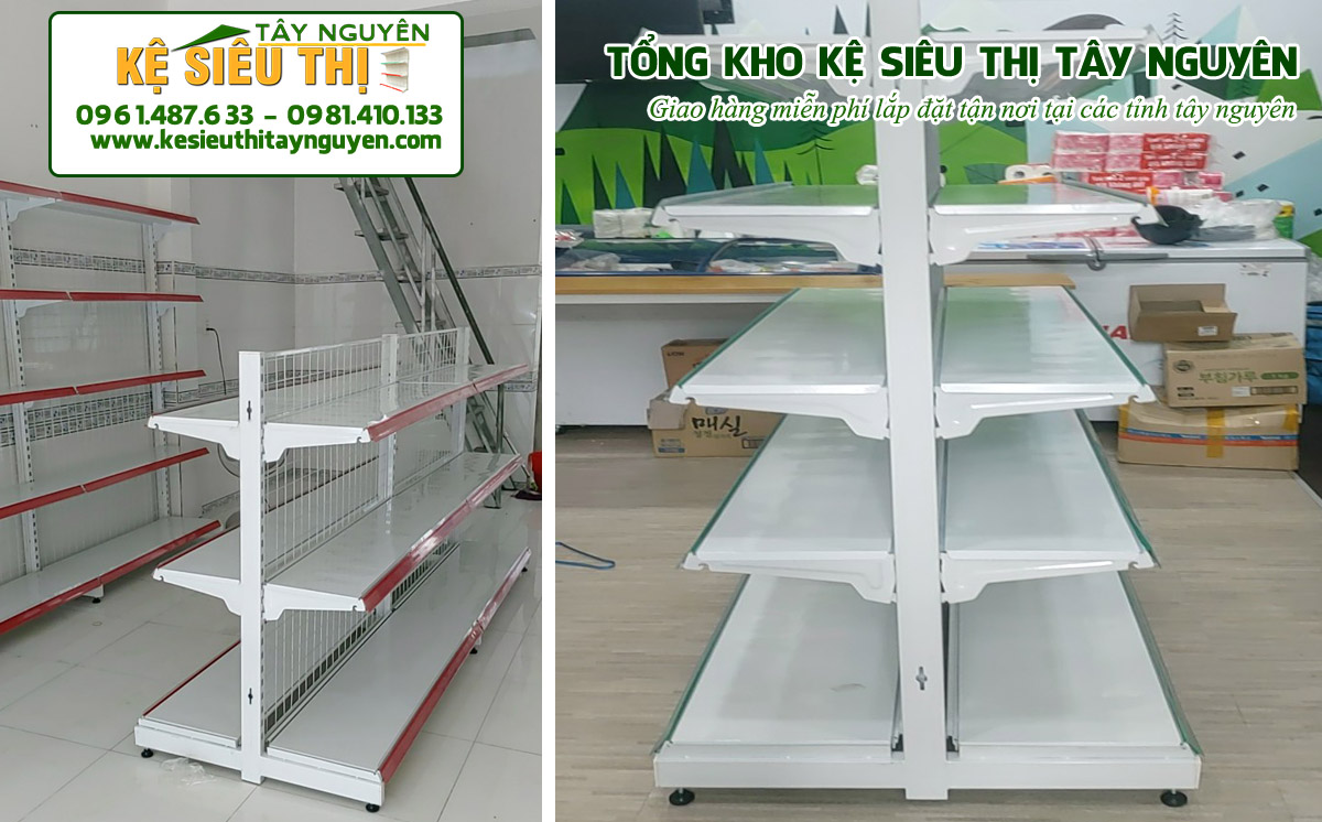 - – kệ trưng bày dép đôi Dài 70cm, 90cm, 120cm x cao 3 tầng đến 6 tầng giúp tận dụng được tối đa không gian để trưng bầy hàng hàng hóa